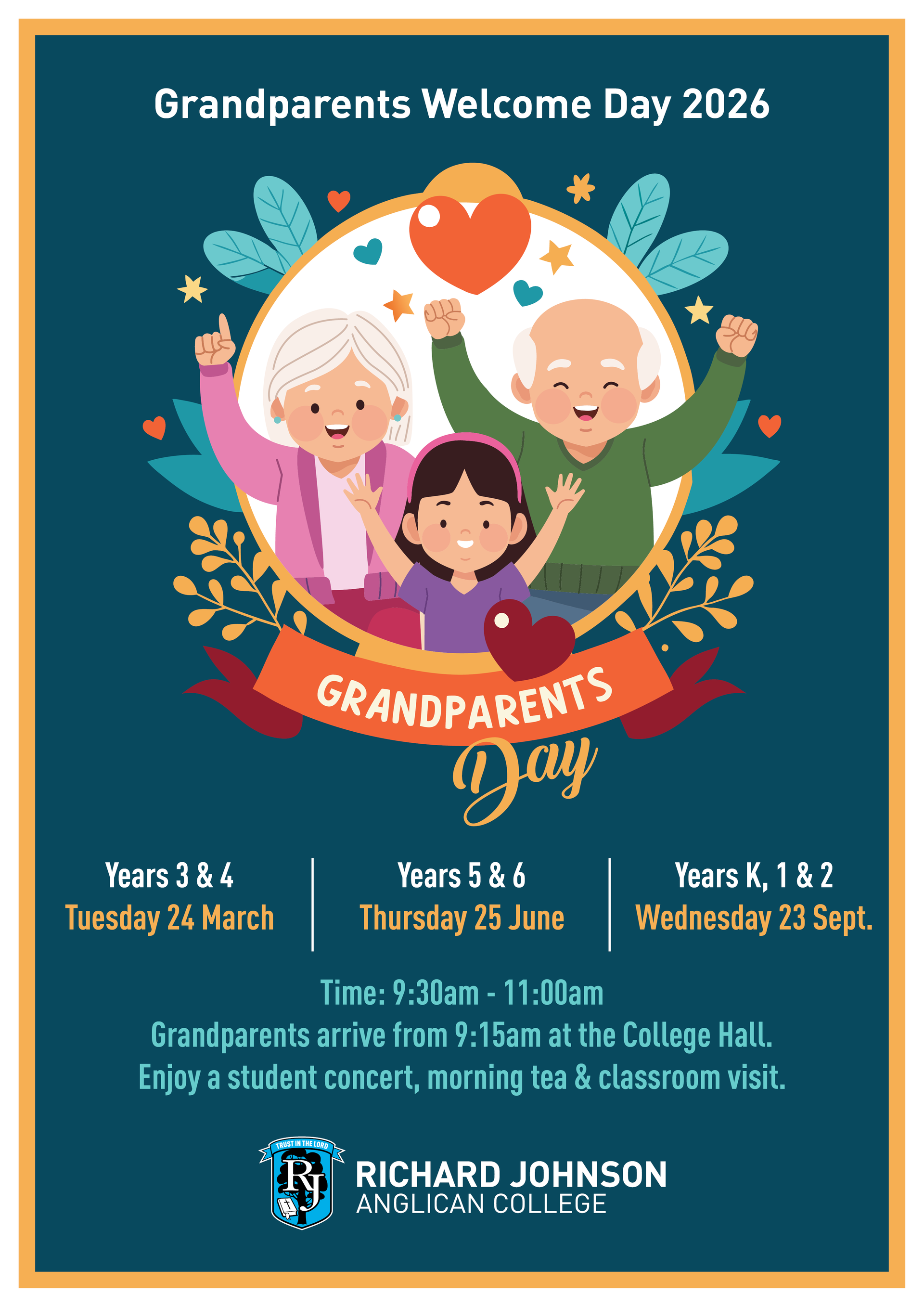 We are also looking forward to our Stage 2 Grandparents Day on Tuesday, 24 March, when our Year 3 and 4 students will host their grandparents. This is always a joyful and meaningful morning, filled with music, student presentations, and the opportunity to share learning together followed by morning tea. For our Stage 1 families, please remember to mark your calendars for the K–2 Easter Hat Parade, which will take place at 2:00pm on the last day of term in the Junior School Courtyard.